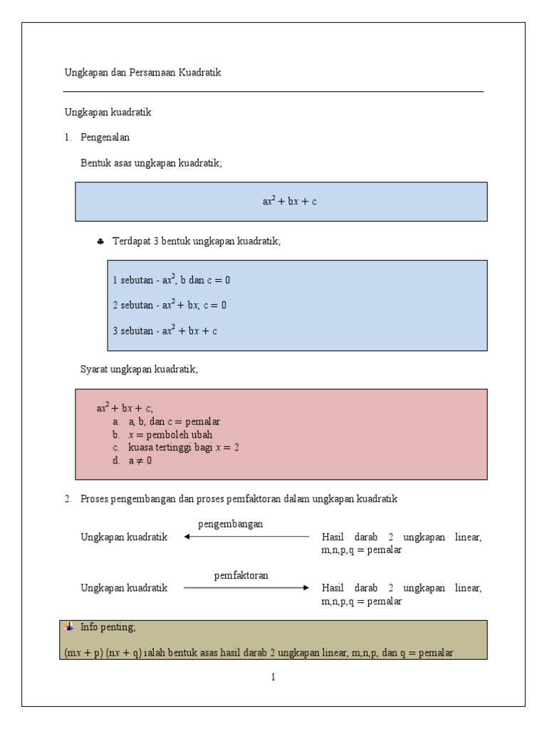Matematik Spm Tingkatan 4 Bab 2 Ungkapan Dan Persamaan Kuadratik Pdf