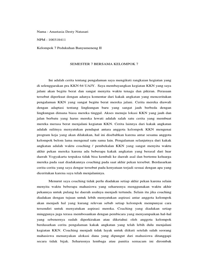 Refleksi Individu Docx Refleksi Pelaksanaan Kkn Reguler Lvii Universitas Sanata Dharma Nama Mahasiswa Dionisius Felix P P Kelompok Kelompok Course Hero